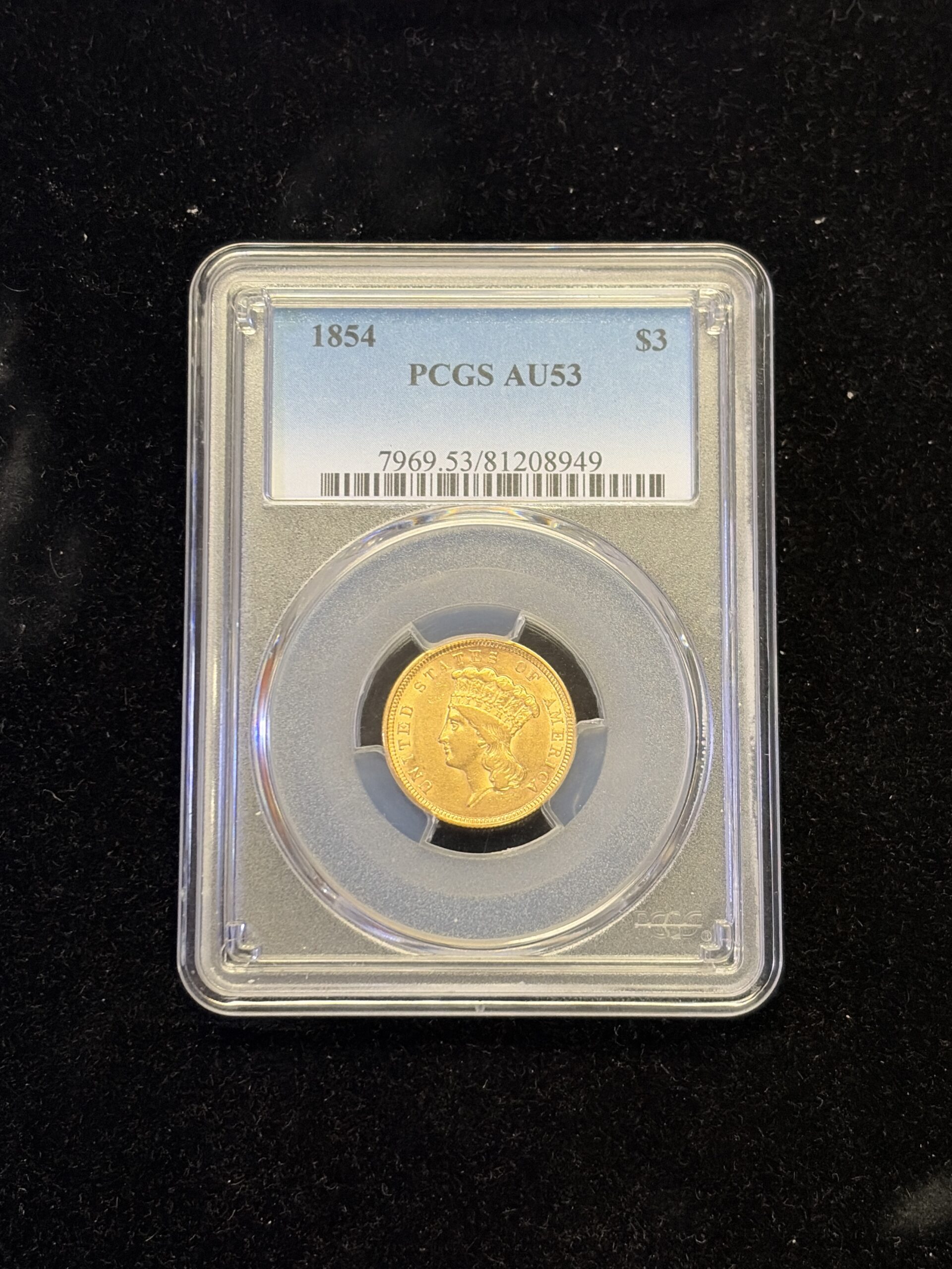 - 1854 $3 Gold Princess PCGS AU53