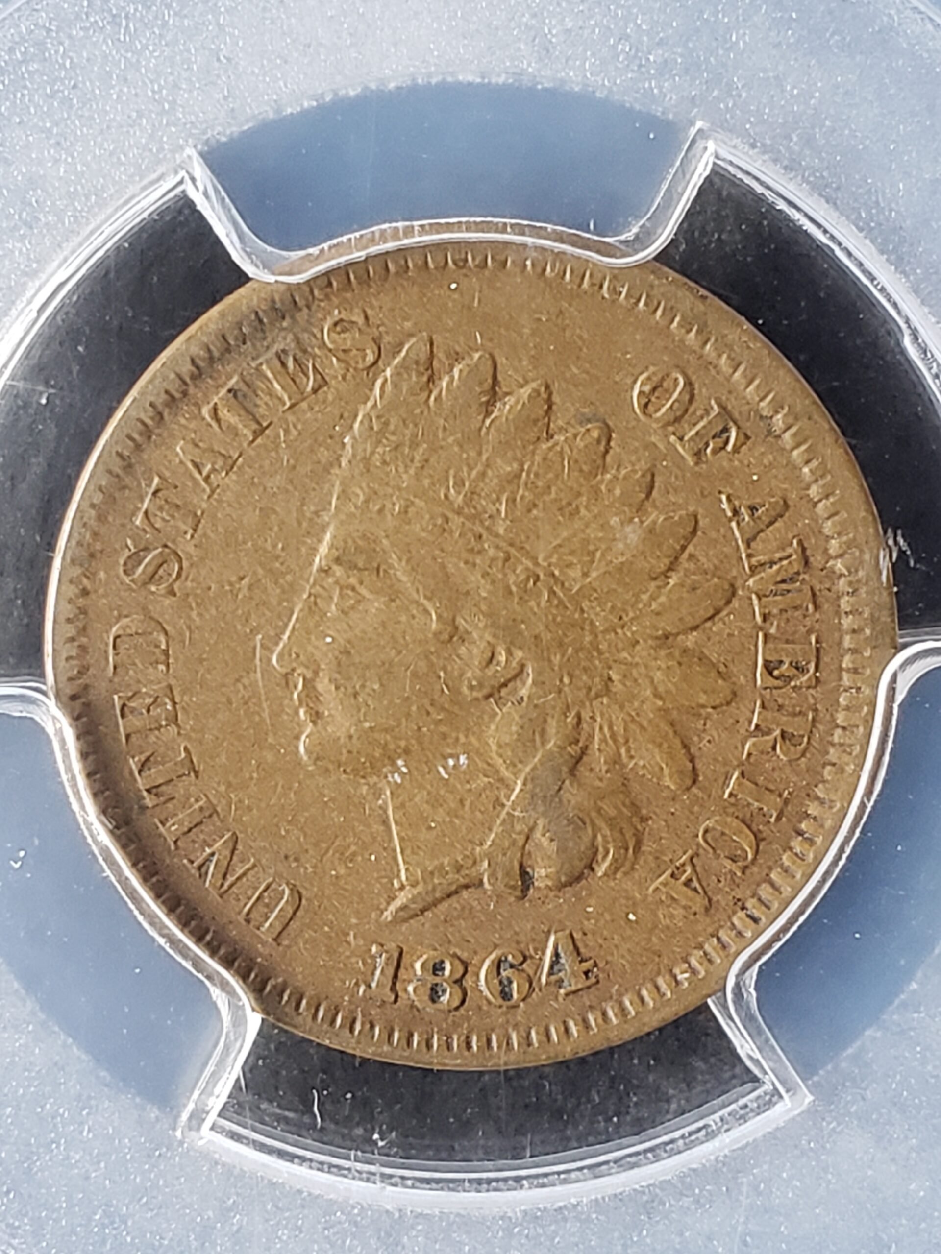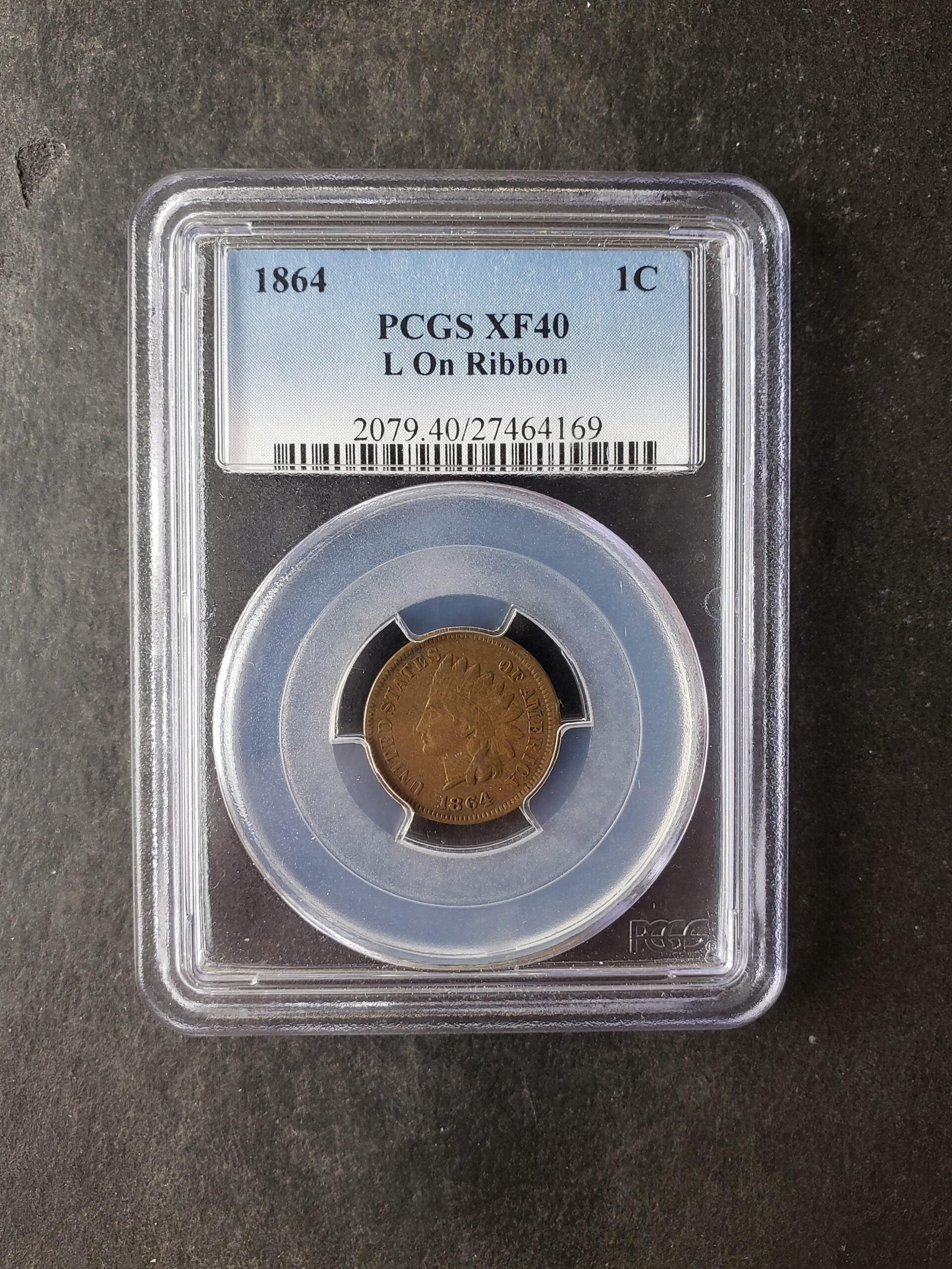 1864 1c Indian Head Small Cent L on Ribbon PCGS XF40.