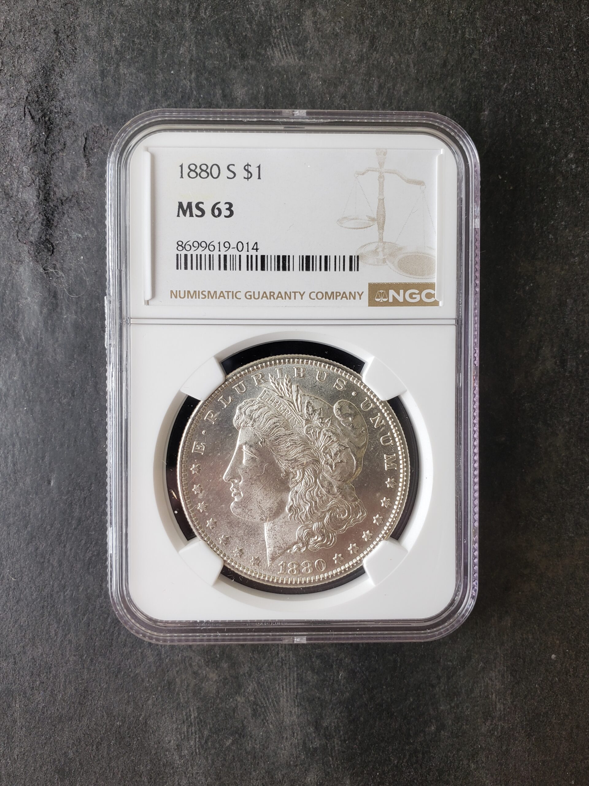 1880 S $1 Morgan Silver Dollar NGC MS63.