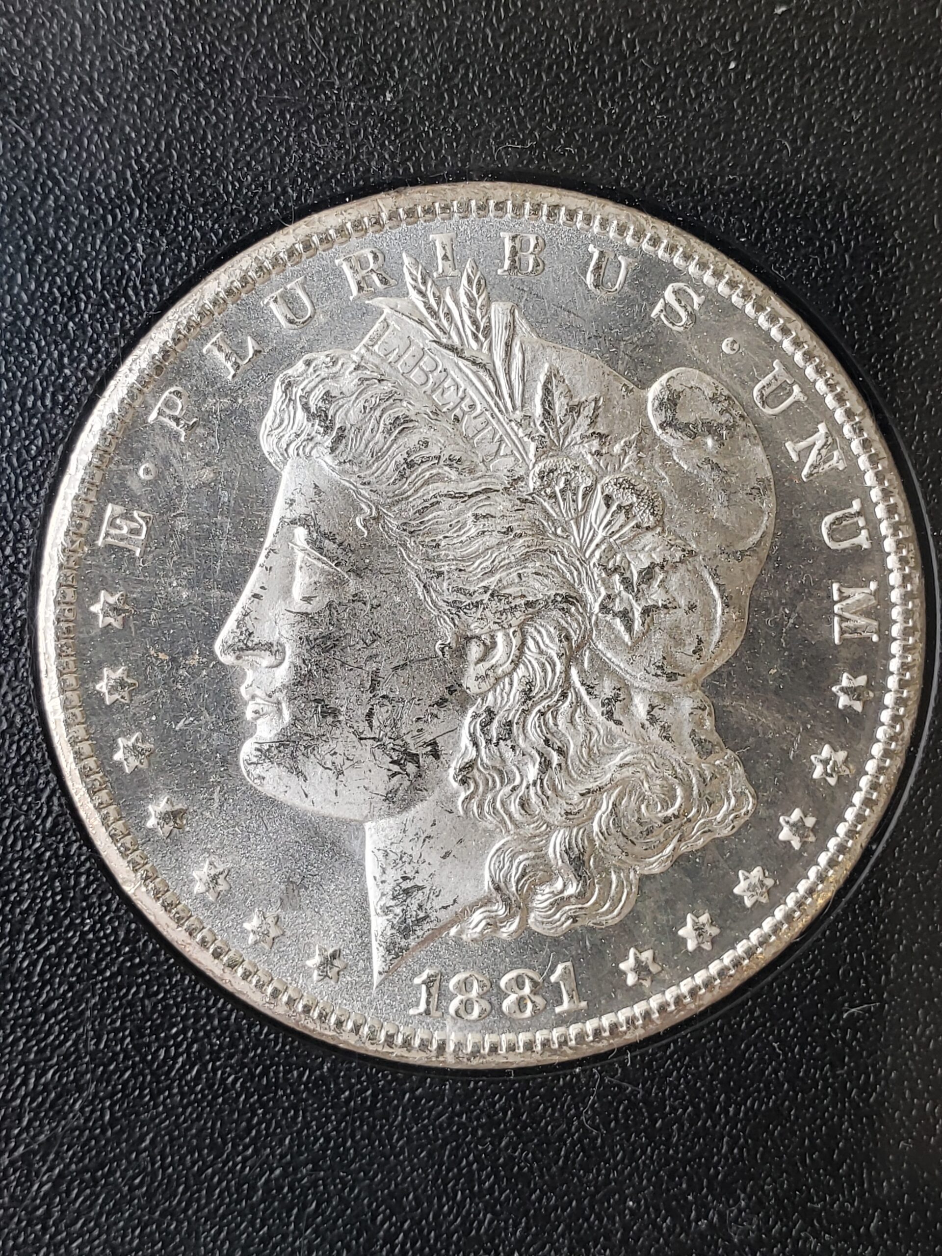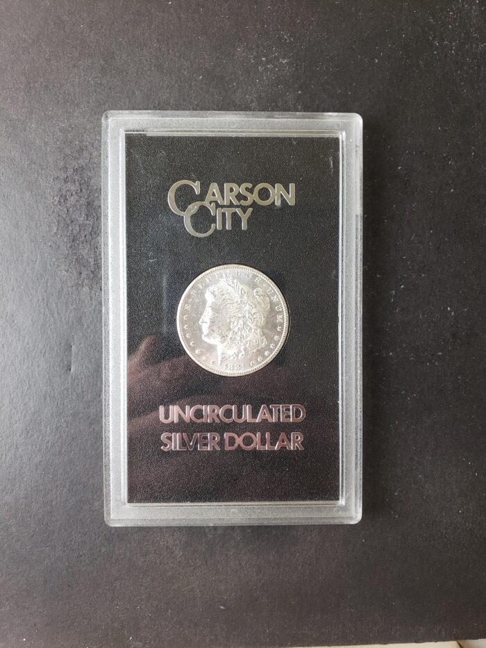 1881 CC $1 Morgan Silver Dollar in a GSA Uncirculated Holder.