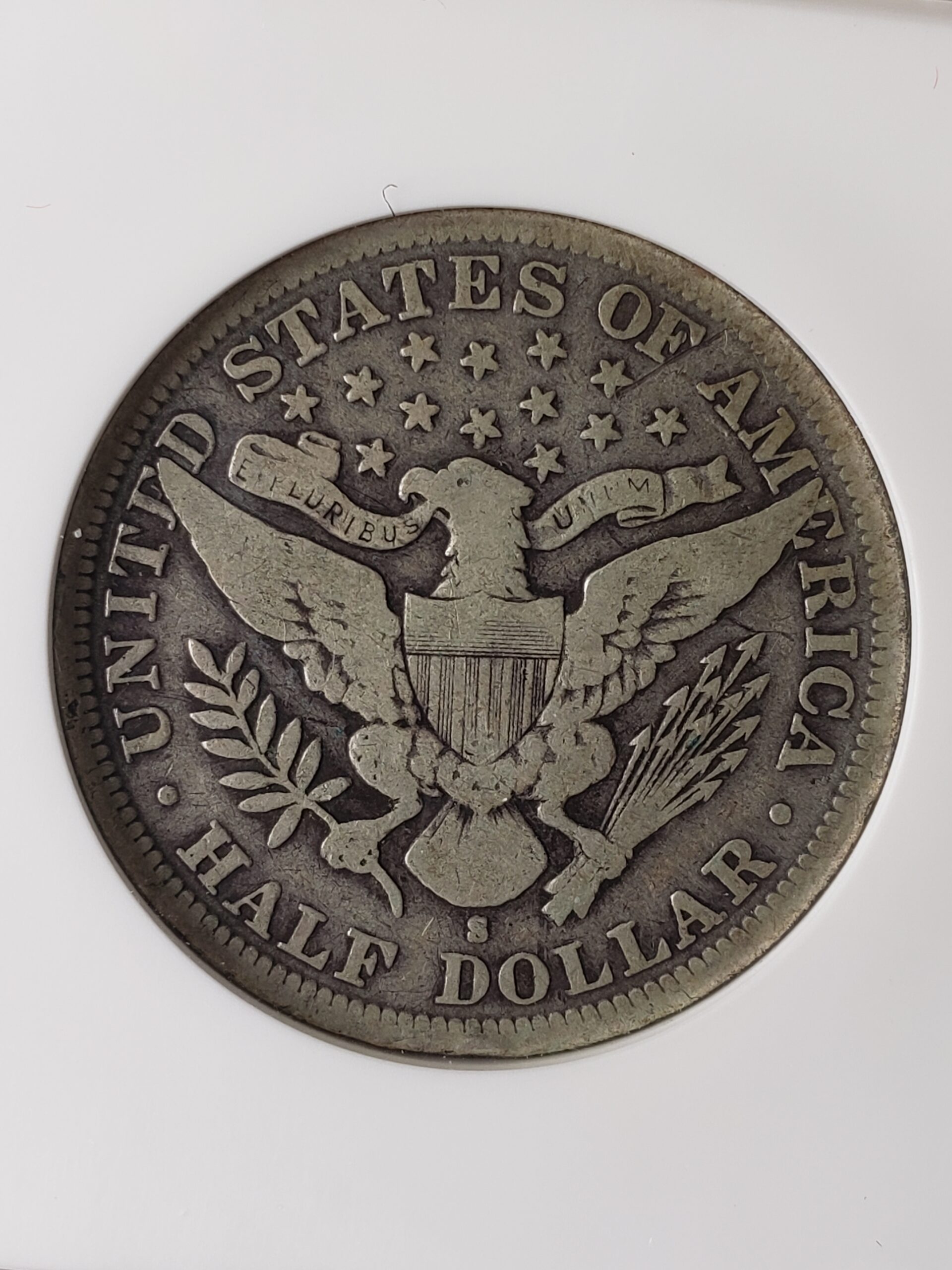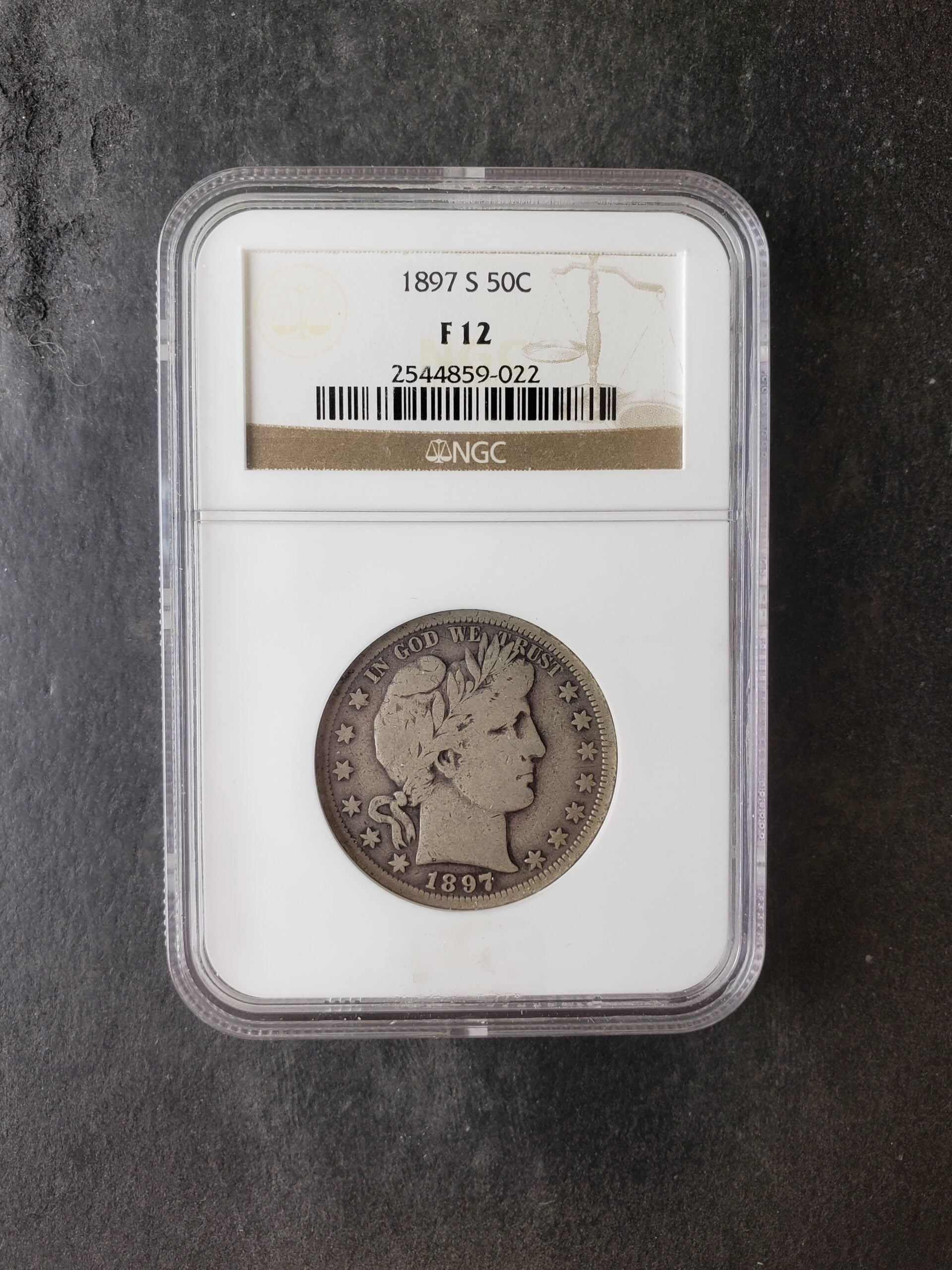1897 S 50c Barber Silver Half Dollar PCGS F12.
