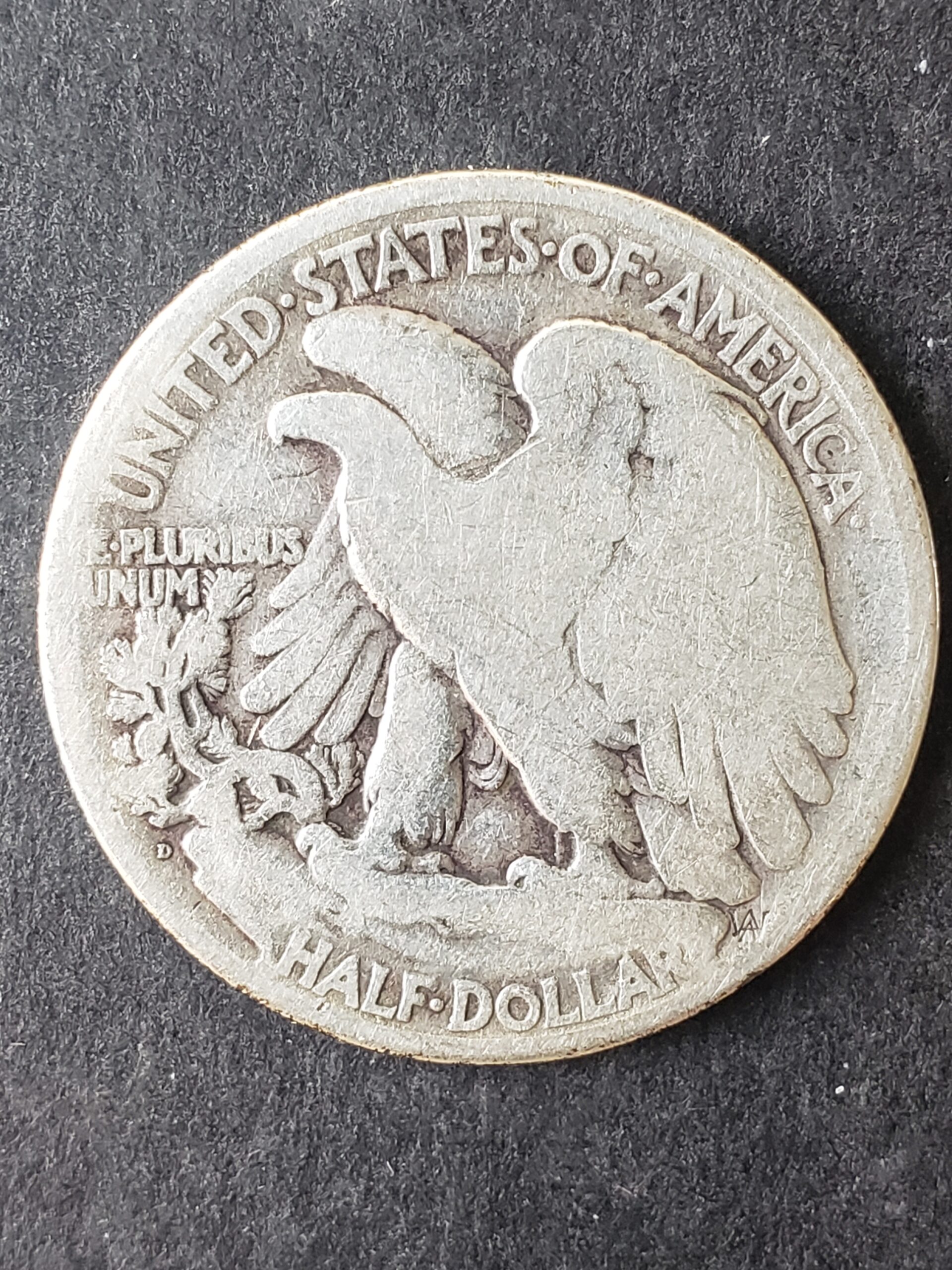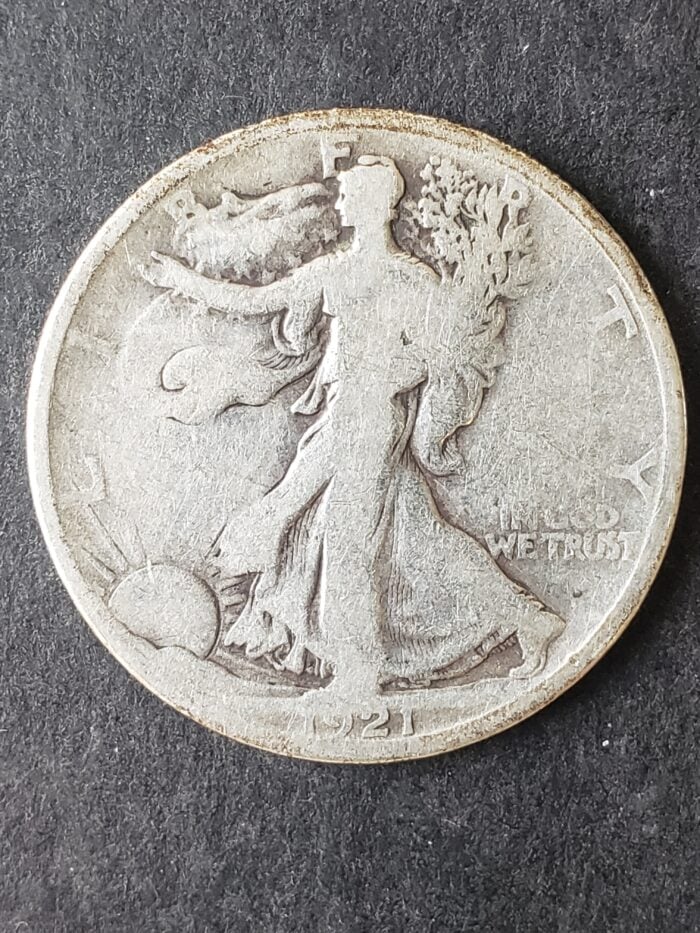 1921 D 50c Walking Liberty Silver Half Dollar.