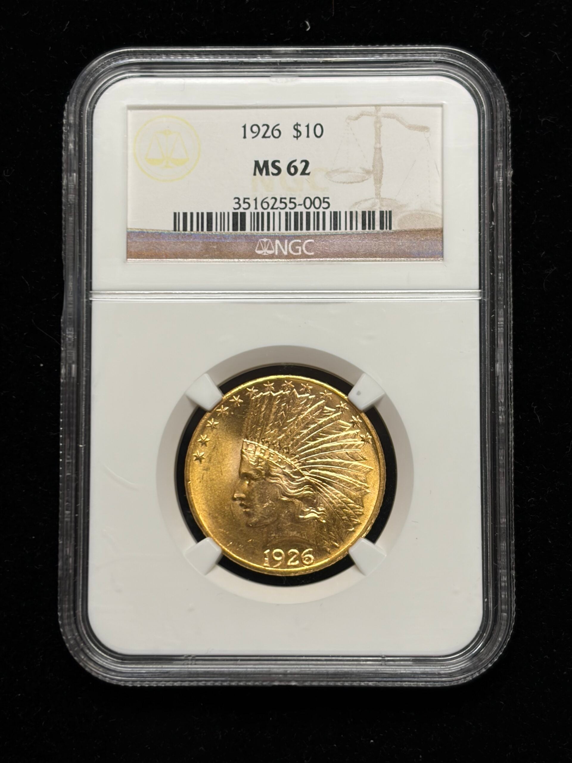 1926 $10 Gold Indian NGC MS62