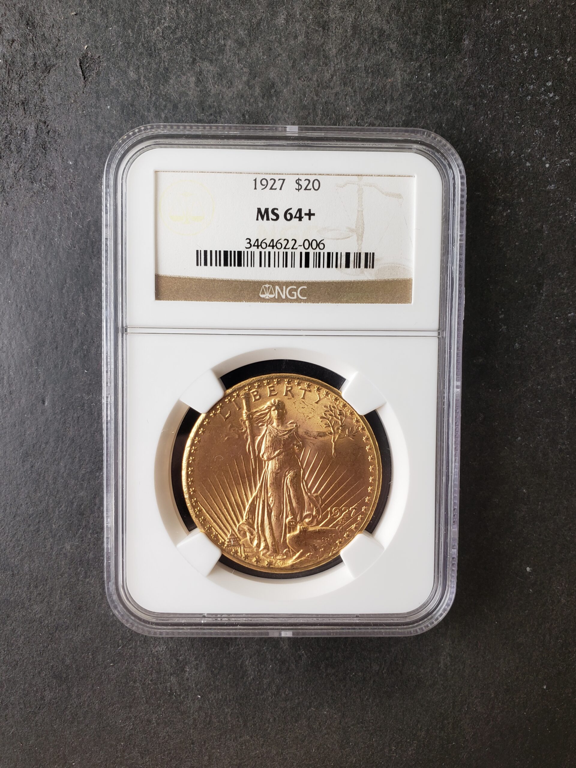1927 $20 St. Gaudens Gold Double Eagle NGC MS64+.