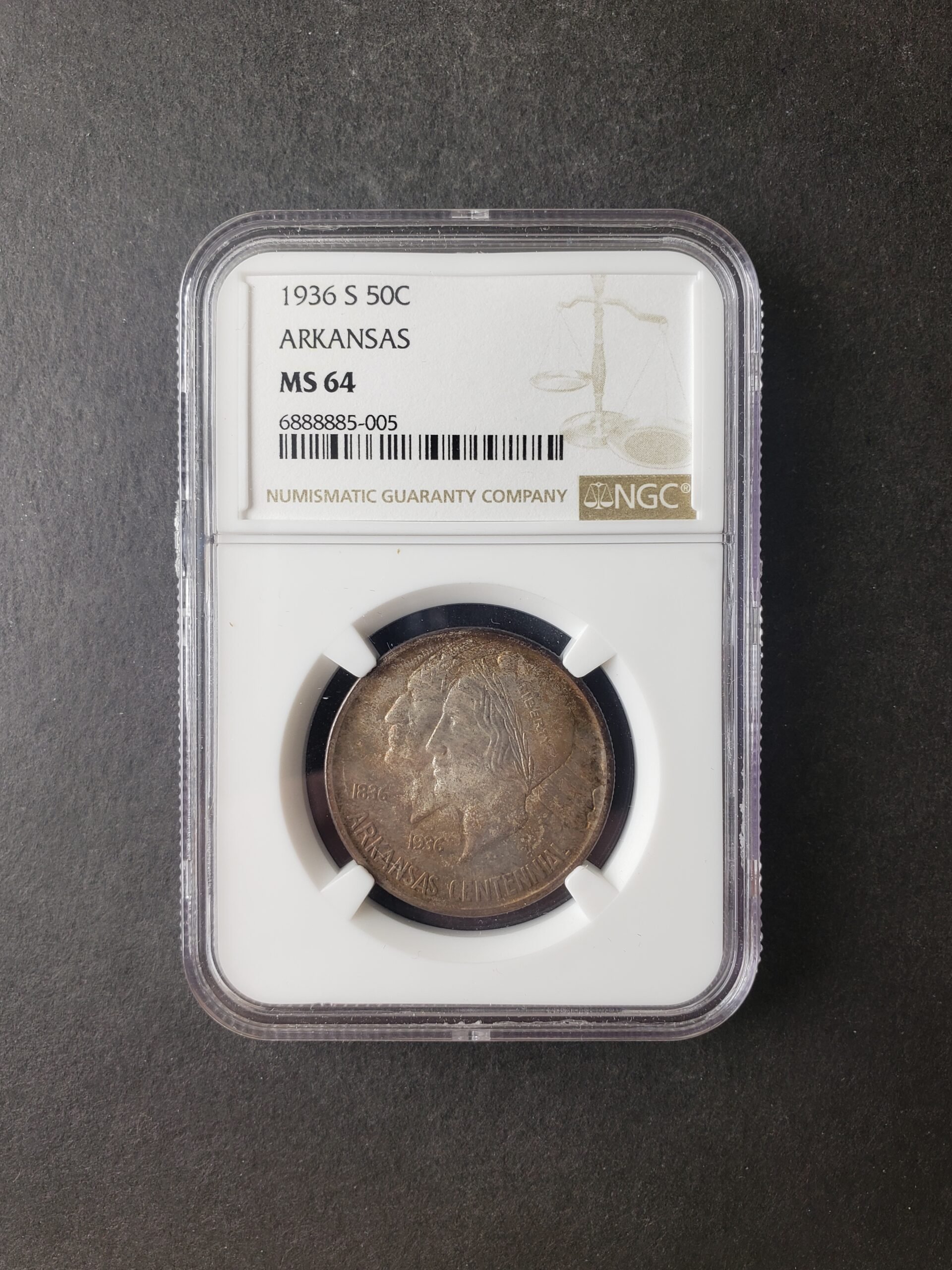 1936 S 50c Arkansas Commemorative Silver Half Dollar NGC MS64.