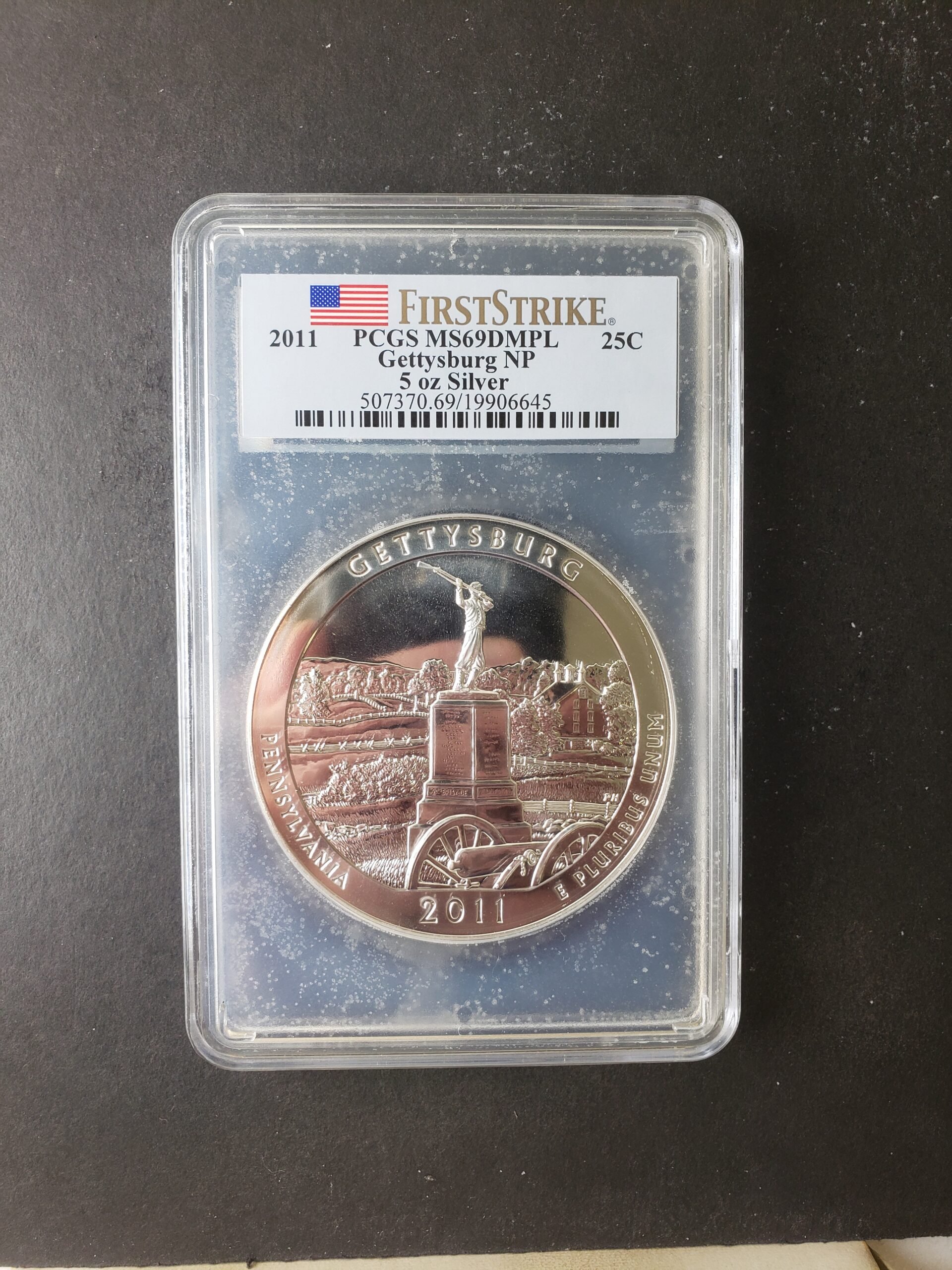 2011 25c Gettysburg National Park 5oz Silver Quarter Dollar PCGS MS69 DMPL.