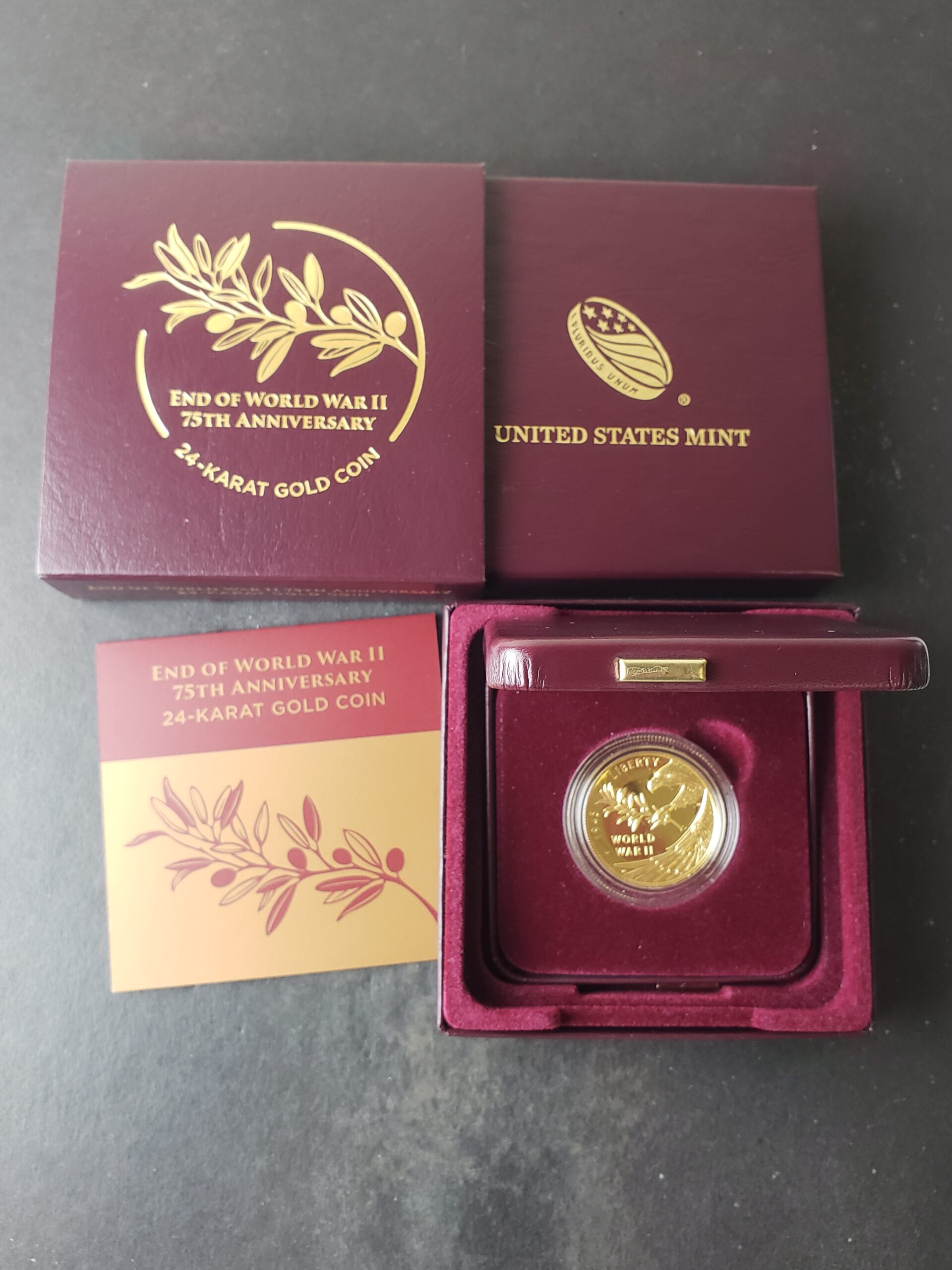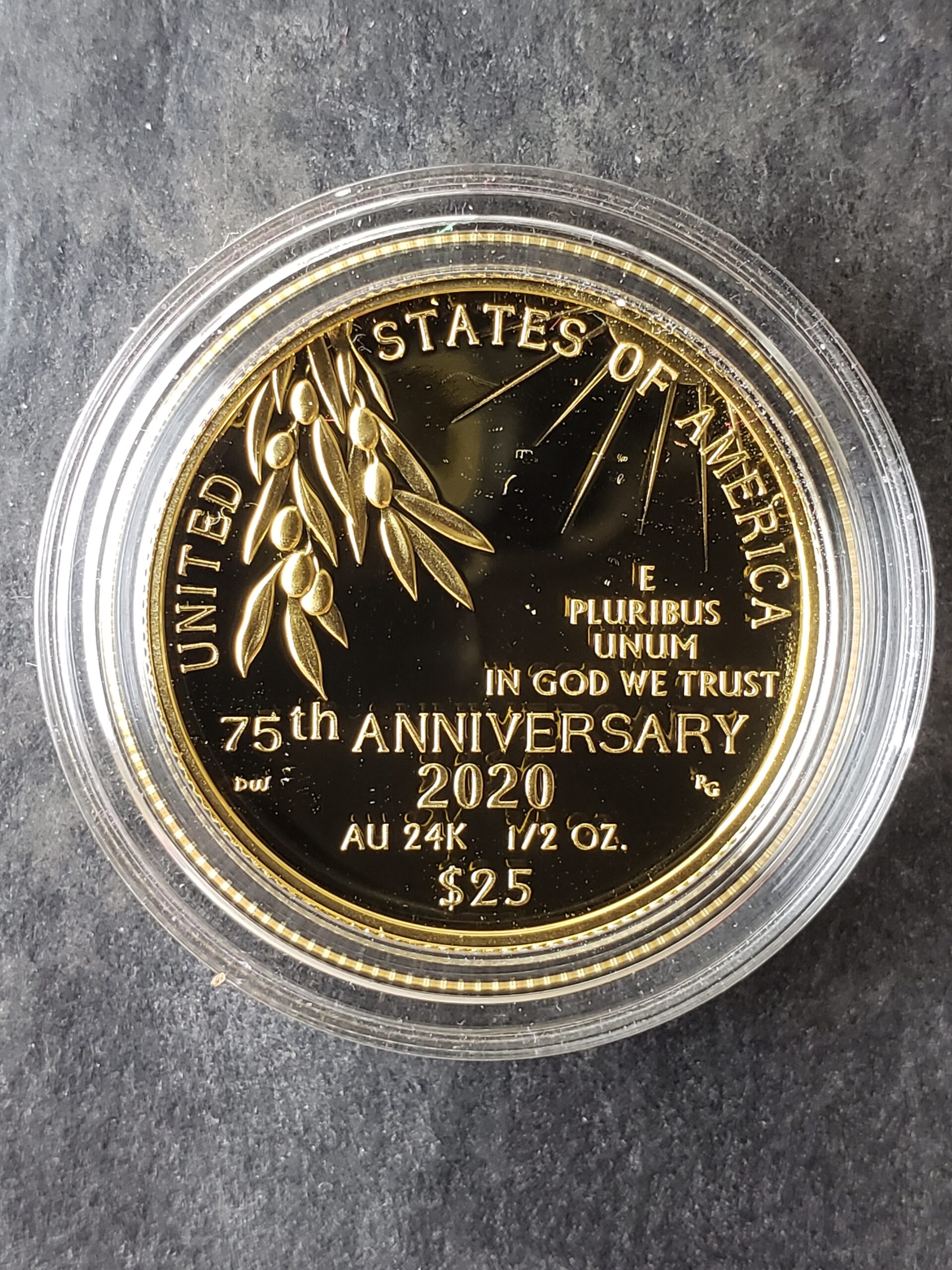 2020 W Proof $25 1/2oz Gold End of WWII 75th Anniversary Commemorative Coin.