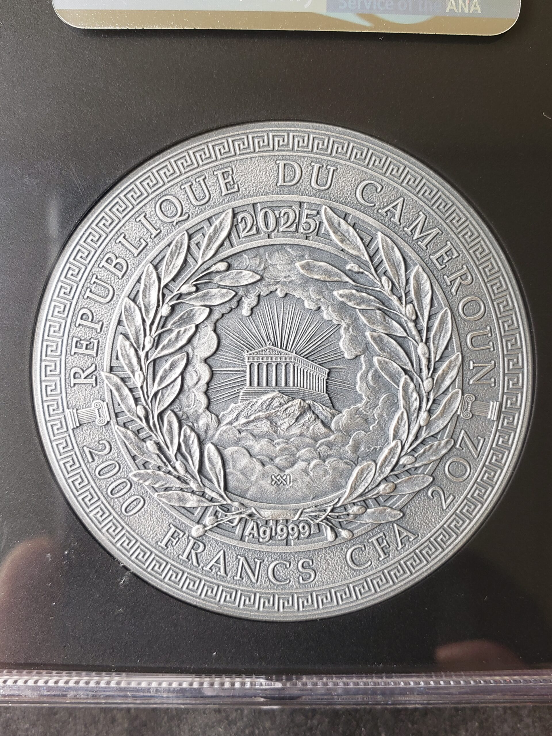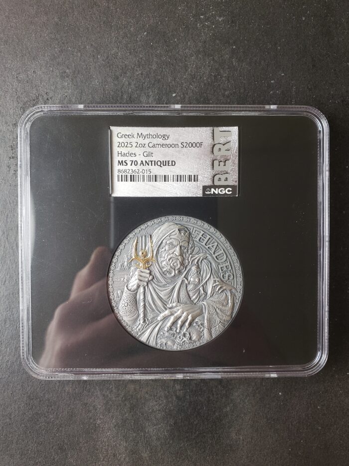 2025 Cameroon Antiqued 2000 Francs CFA 2oz Silver Hades Coin NGC MS70.