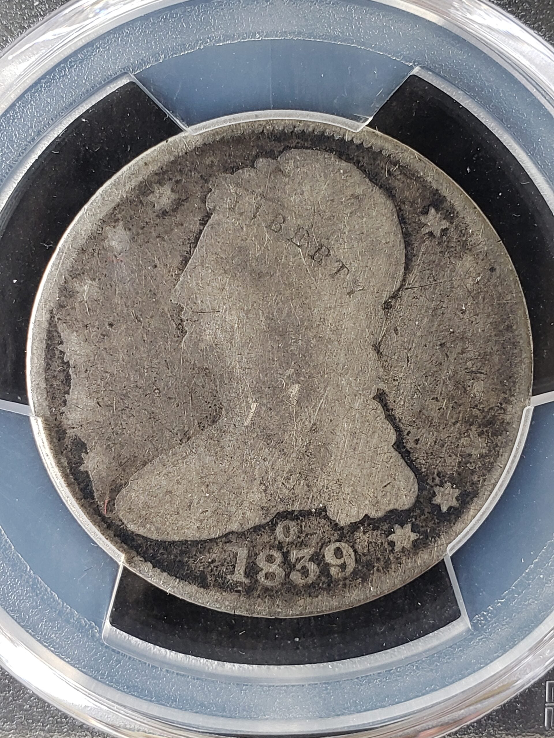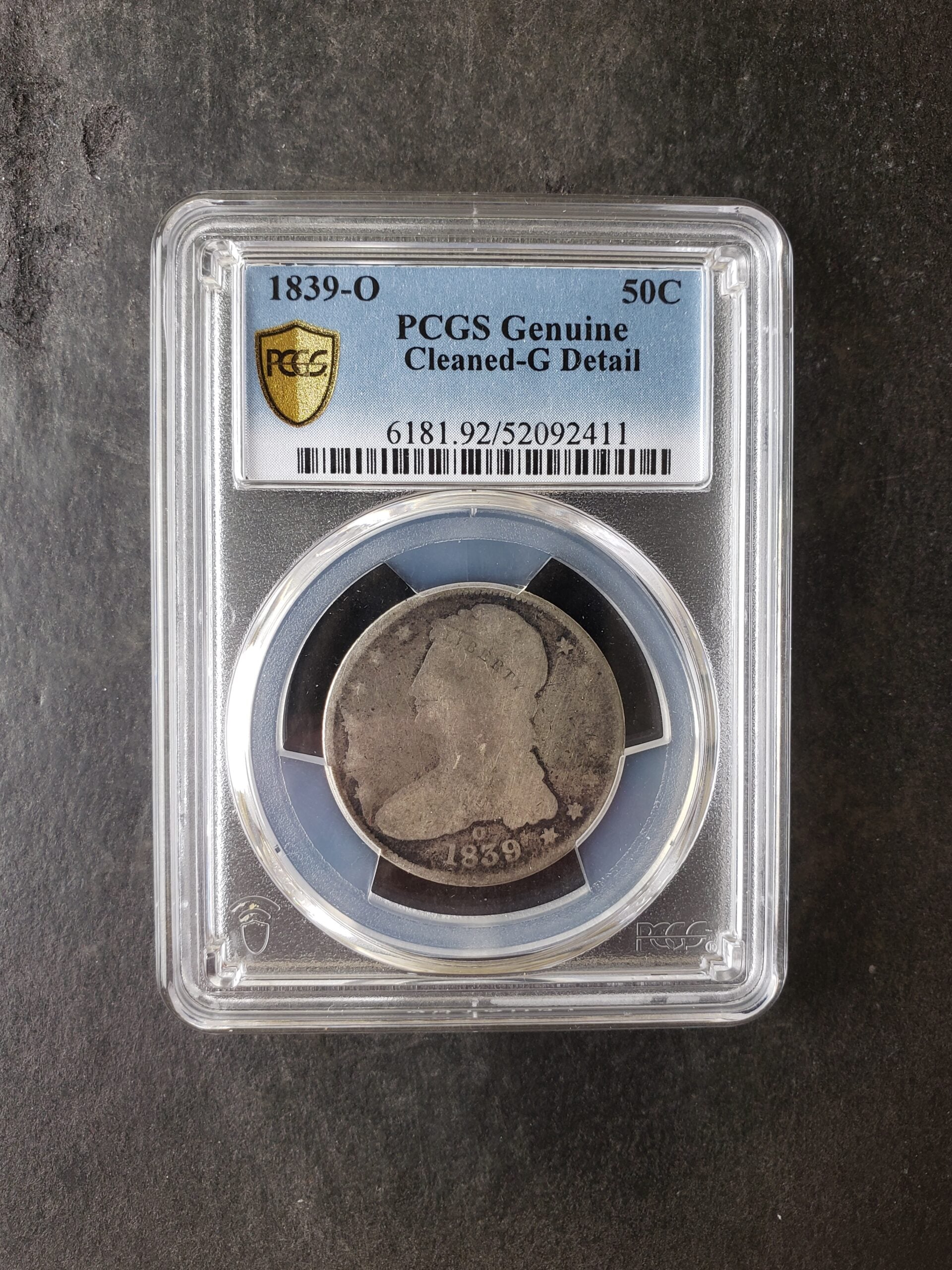 1839 O 50c Capped Bust Silver Half Dollar PCGS Cleaned G Detail.