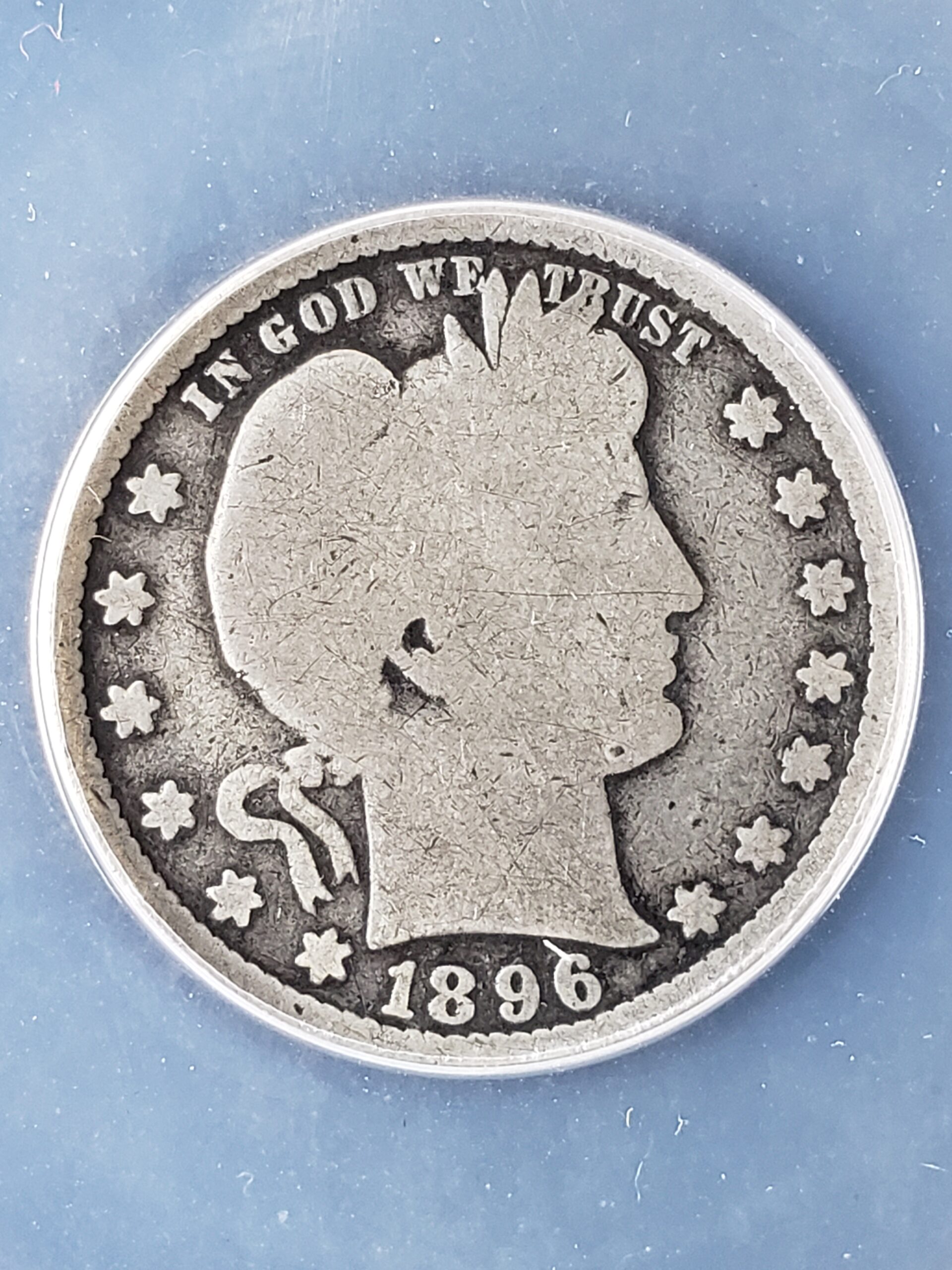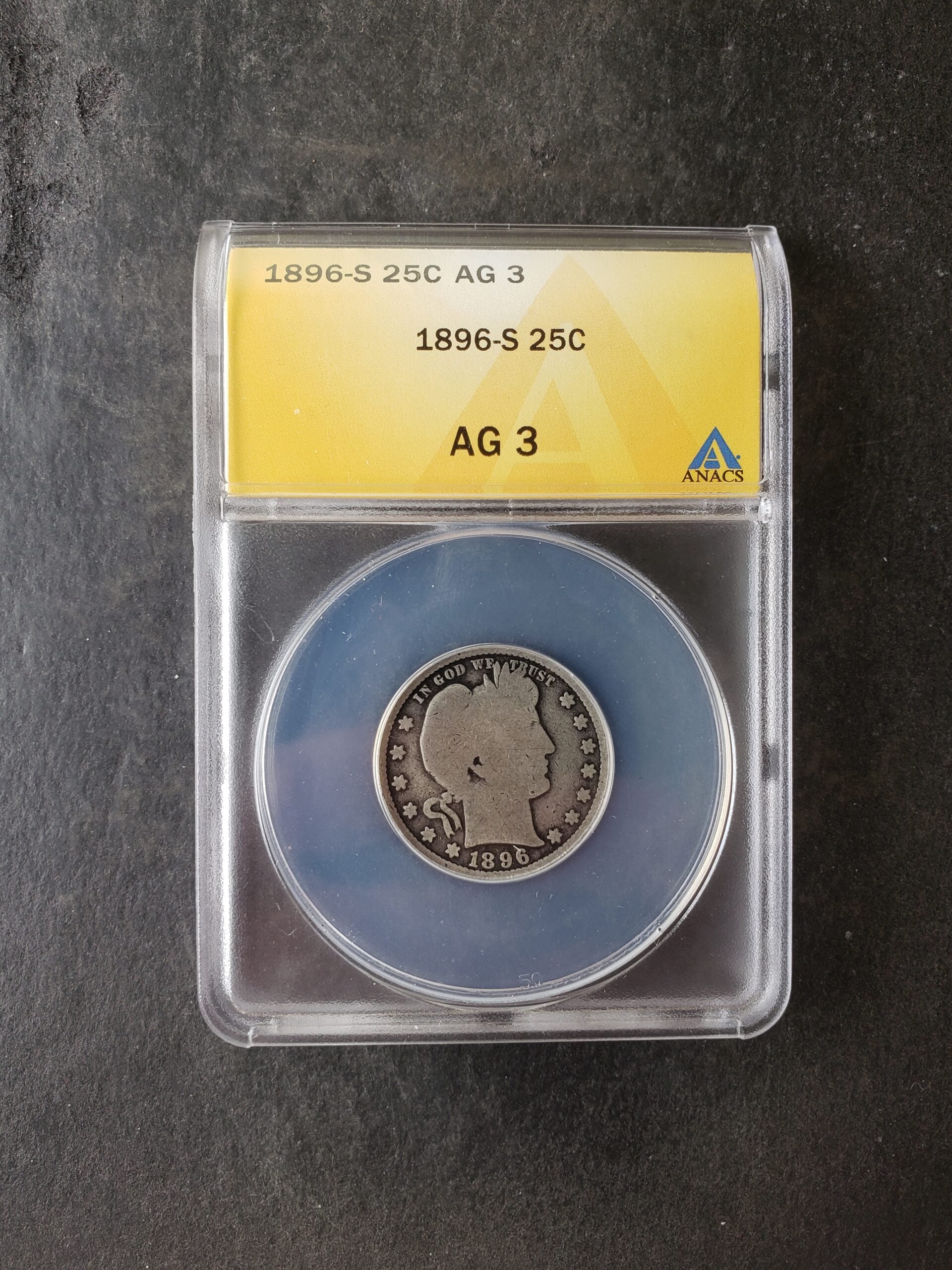 1896 S 25c Barber Silver Quarter Dollar ANACS AG3.